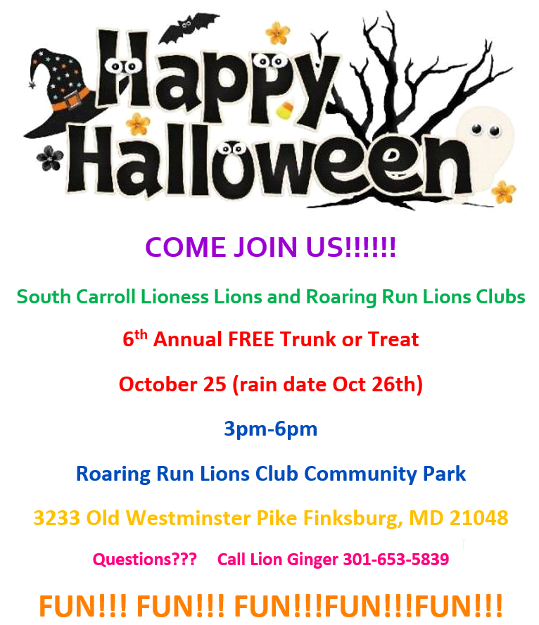 Place: Roaring Run Lions Club Park, 3233 Old Westminster Pike, Finksburg, Md.