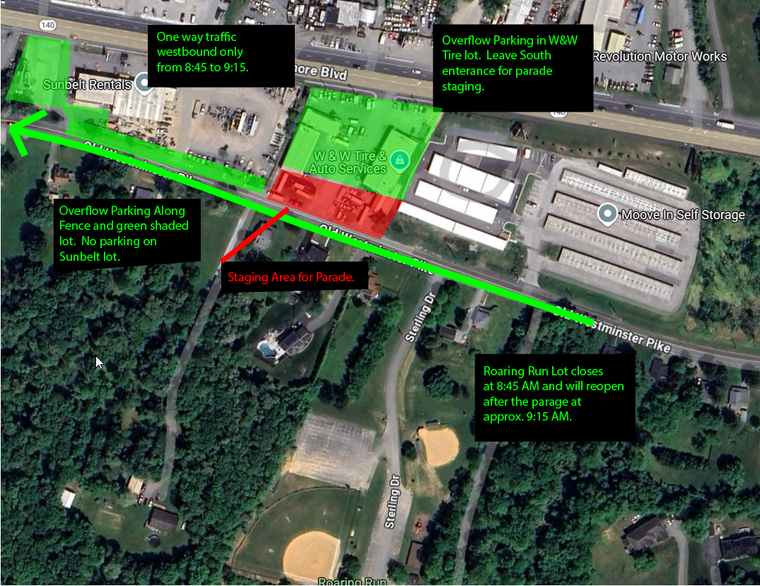 | Parade | 9:00 AM | 9:15 AM | W&W to Roaring Run |